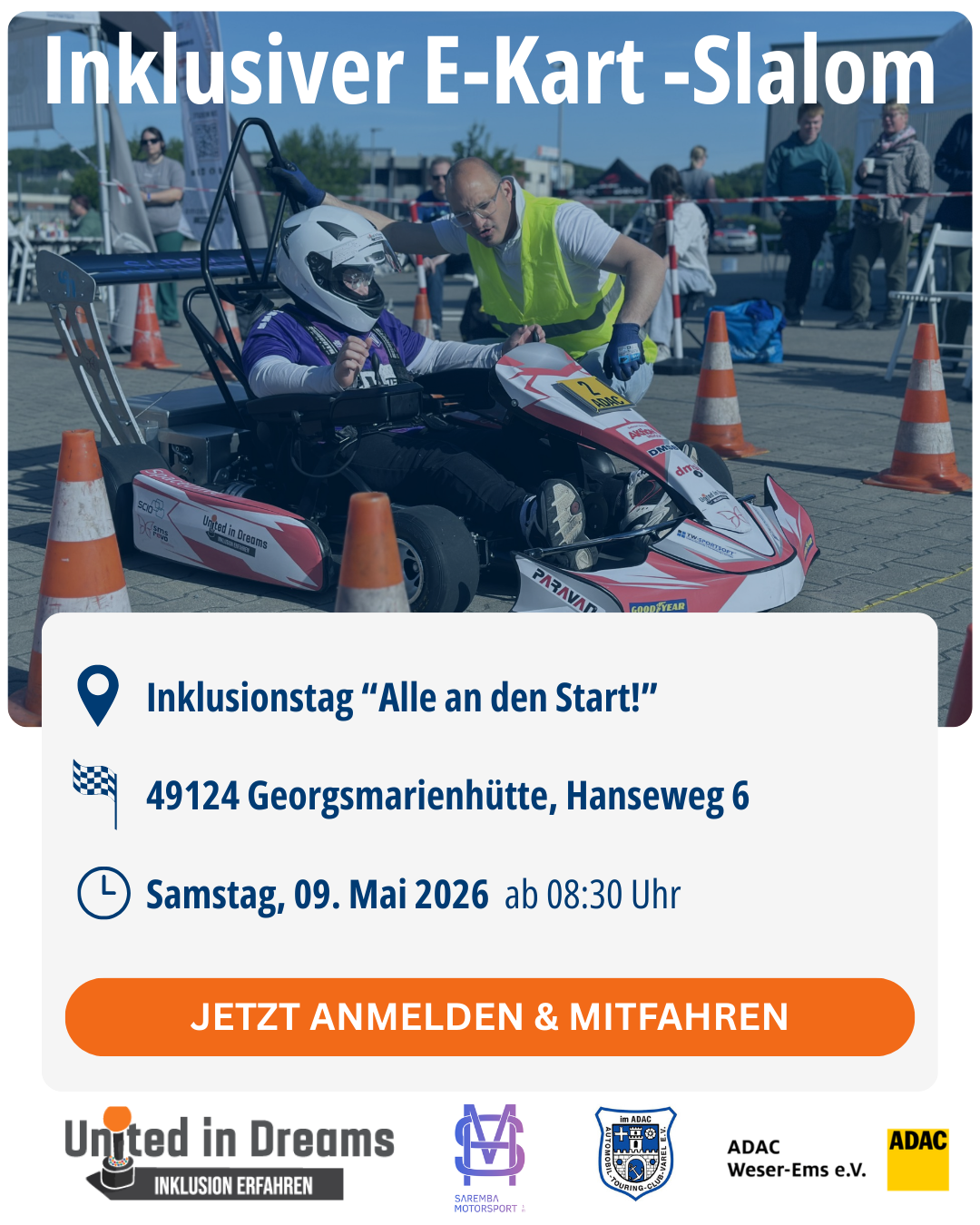 Die Deutsche Meisterschaft im inklusiven E-Kart-Slalom (iDKSM) geht in die nächste Runde – und dieses Jahr wird’s nochmal fetter!